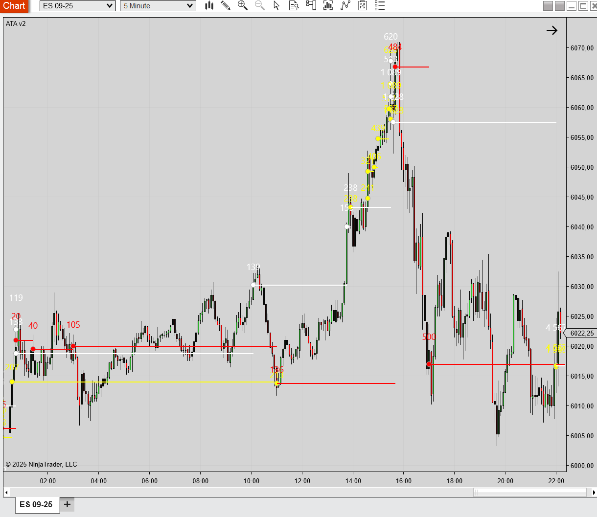 ATA is a multi-layered indicator that scans every tick and volume event on the chart to pinpoint moments of peak interest and price sensitivity. It’s designed to highlight inflection points, volume surges, and psychological turning zones, giving the trader both a real-time alert system and historical context.