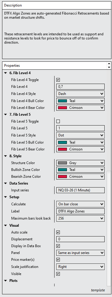 DTFX Algo Zones for NinjaTrader 8 – SMC Market Structure & Auto-Fib Retracements
