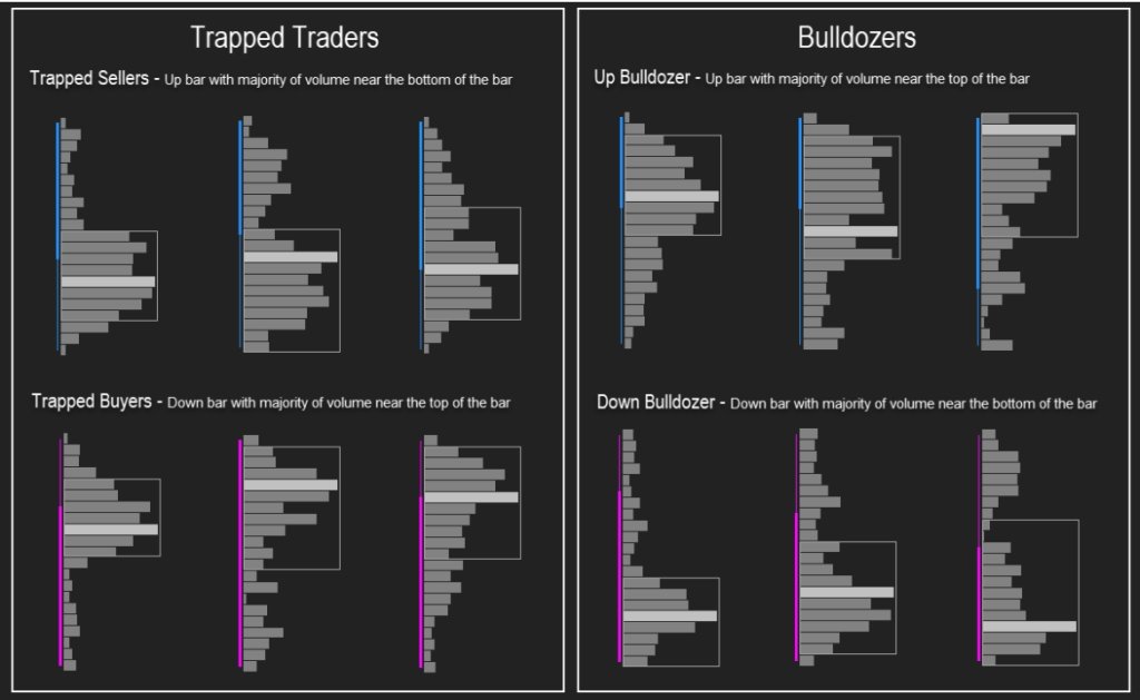 • At Market Edges: Detect potential reversals at new highs or lows. When combined with Surge or Trapped Trader bars, it can reveal high-probability entry points.