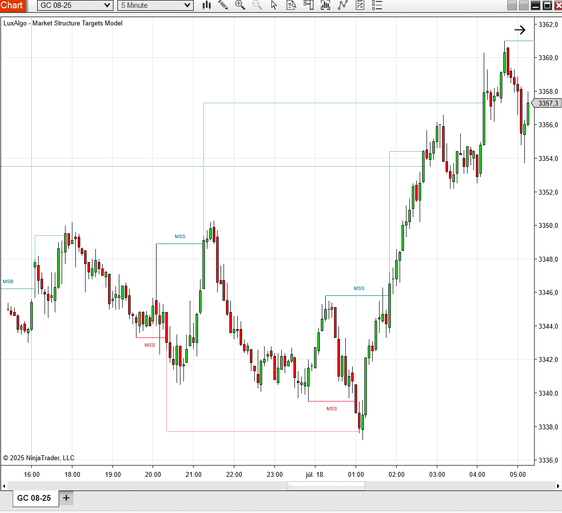 💡 Note: Targets are plotted only when price closes below (bearish) or above (bullish) the MSS/MSB signal, ensuring clean, actionable levels.